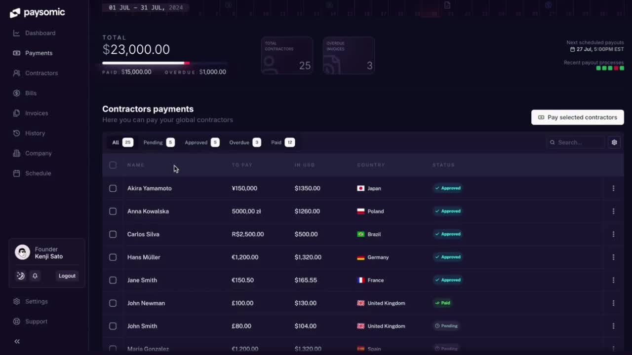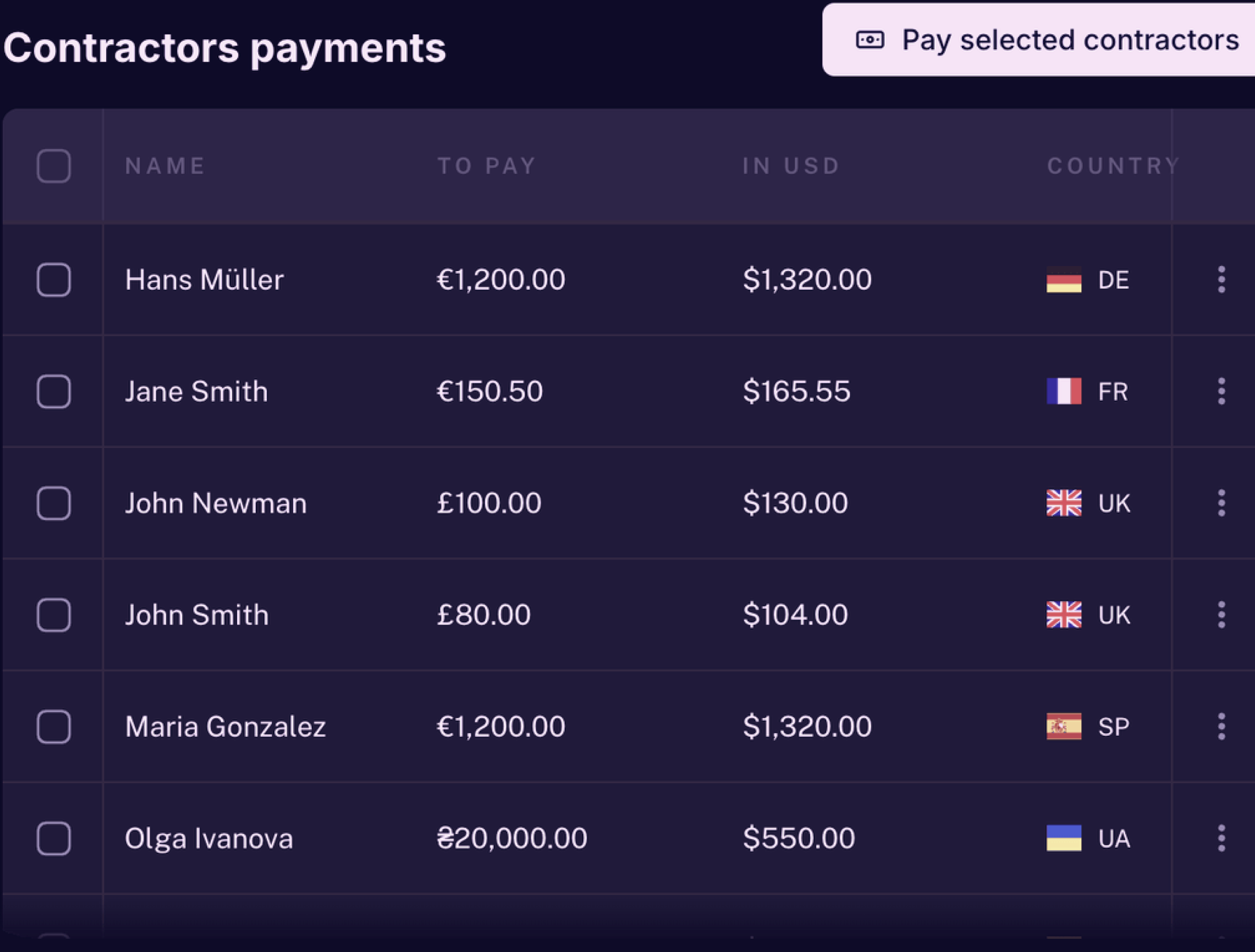 Simplify your payouts process with automated batch payments to contractors around the globe