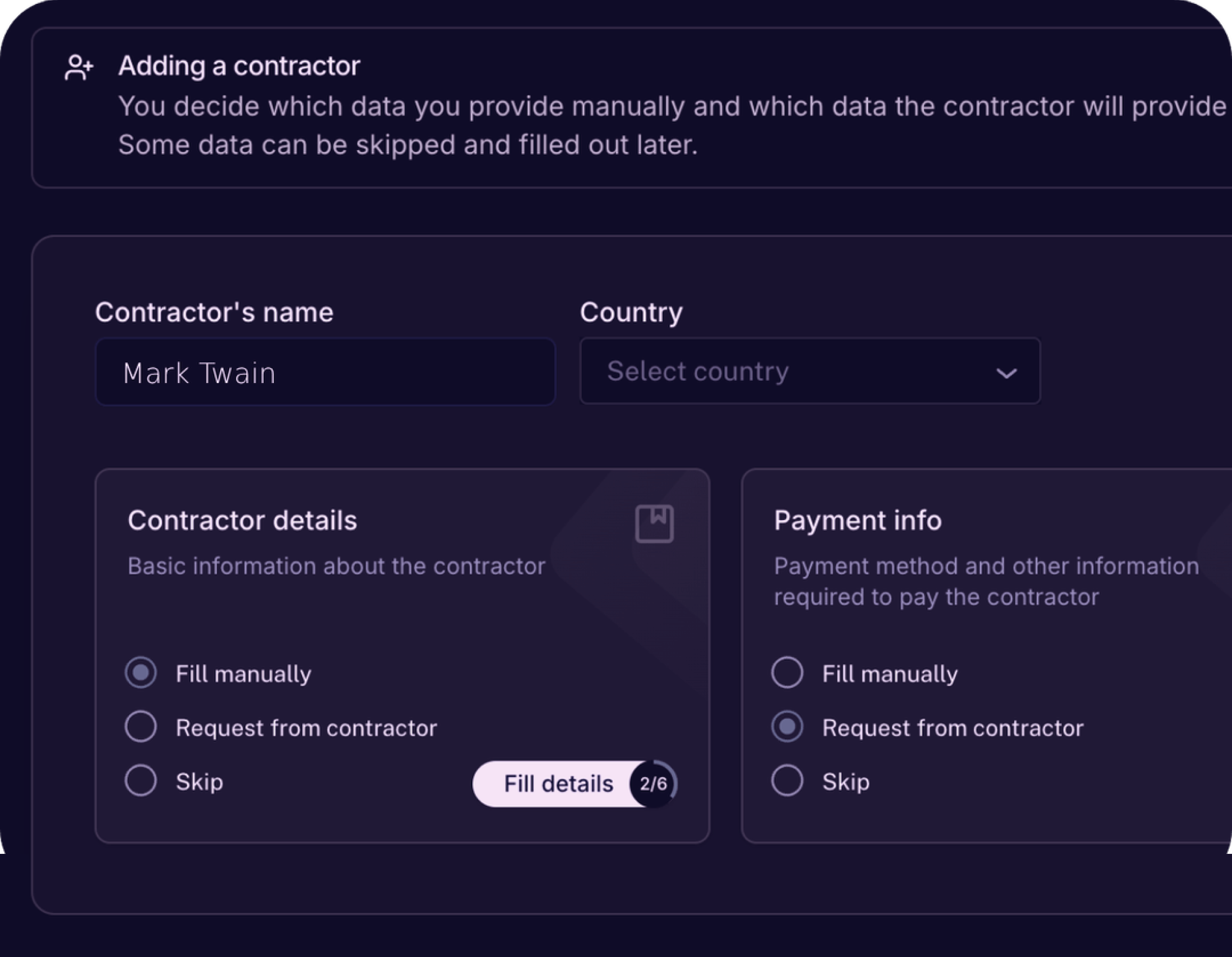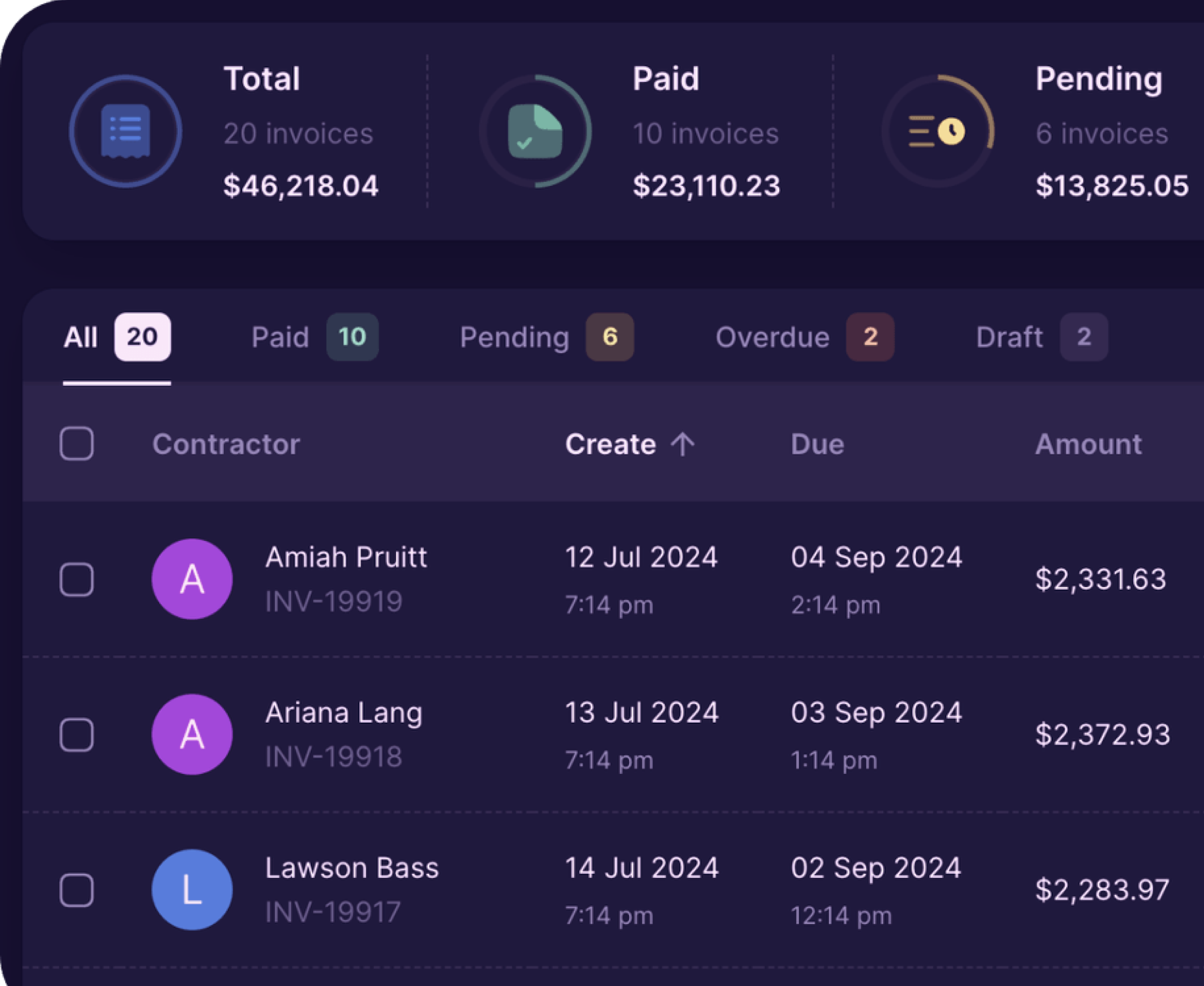 Pay contractors in over 150 countries in their local currency. Create custom payment schedules that work for your business.